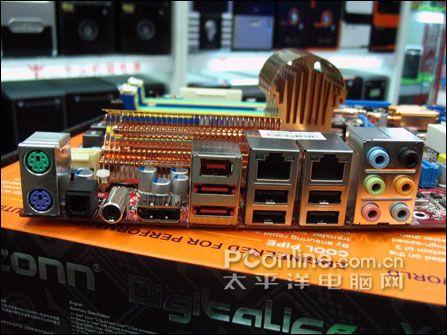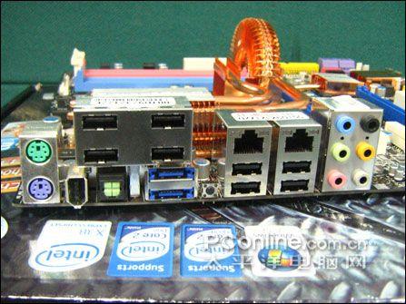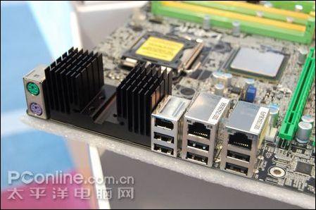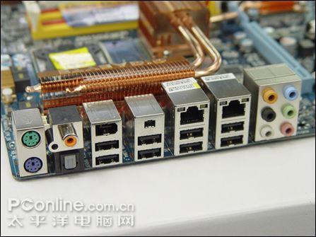 主板声卡再次采用子卡形式,搭载的是ALC 885芯片,提供8声道输出。此外,它还板载Marvell/88E8052+88E8053双千兆网卡芯片。在主板I/O端口方面,它省去了老式的接口,这样让空气流通更为通常,增强散热效果。接口方面,它提供了6个USB2.0和一个1394接口。