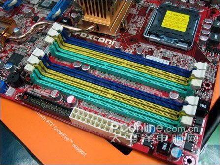 富士康 X38A提供4条DDR2内存插槽,支持双通道DDR2 800/1066(超频)MHz内存规格。还有2条DDR3内存插槽,支持双通道DDR3 1333MHz,最大支持4GB。