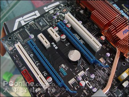 华硕P5E主板提供了2根PCI-E 2.0 X16,3根PCI-E X1,和2根传统PCI,并且支持ATI crossfire交火技术。