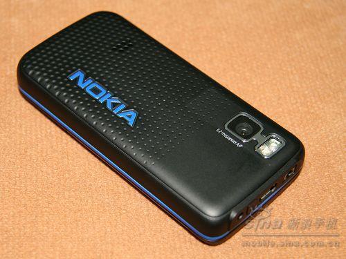 机身背面采用一体化设计思路,结构非常严谨。椭圆形的滑块既有效保护了下面那颗娇贵的320万像素“卡尔-蔡司”自动对焦CMOS摄头和高亮度的闪光灯,同时也增加了一份时尚与活力。与此同时,这个保护盖还采用了和诺记6270一样的半自动设计,用户只需将其推至一半的位置就可以自己完全滑开。