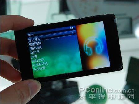蓝魔RM970的做工精湛,背面还有一颗扬声器。集成了07年相当流行的微软音效,蓝魔RM970不愧为08年国产MP4开年大作。