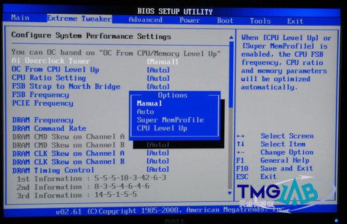 Ai Overclock Tuner包含四种模式:Manual、Auto、Super MemProfile和CPU Level Up。