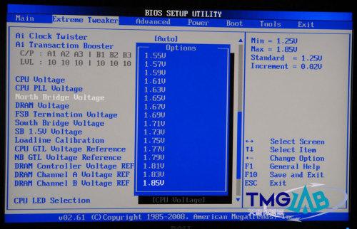 北桥芯片电压的调节范围为1.25V-1.85V,以0.02V为步进。