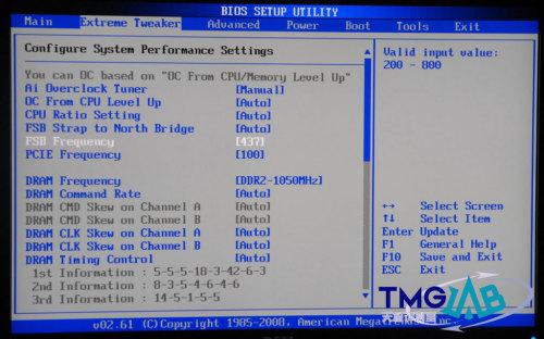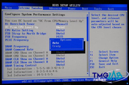 我们测试使用的是400MHz外频的Intel QX9770处理器,通过CPU Level Up进行超频的话,如果选择Crazy模式,则处理器的外频会超频至437MHz。