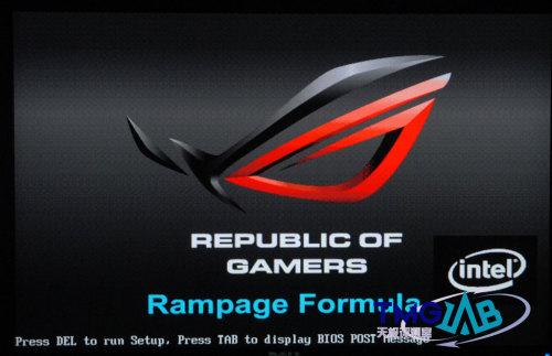 华硕Rampage Formula的开机画面设计的十分漂亮,且极具质感。