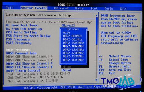 在使用400MHz外频的Intel QX9770处理器情况下,内存的频率最多可以设置为DDR2-1603MHz。
