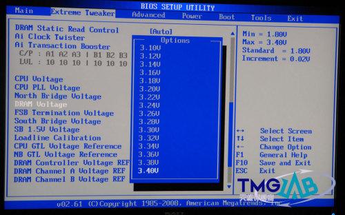内存电压的调节范围为1.8V-3.4V,以0.02V为步进。