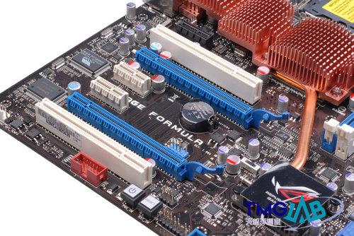 扩展插槽部分,华硕Rampage Formula提供了两条PCI-E x16插槽、三条PCI-E x1插槽和两条PCI插槽,扩展能力相当不错。华硕Rampage Formula支持AMD CrossFireX多显卡互联技术,由于Intel X48北桥芯片可以提供两条PCI-E 2.0 x16插槽,故华硕Rampage Formula支持双PCI-E x16的双显卡互联,可以最大限度的发挥AMD Radeon 3800系列显卡的性能。