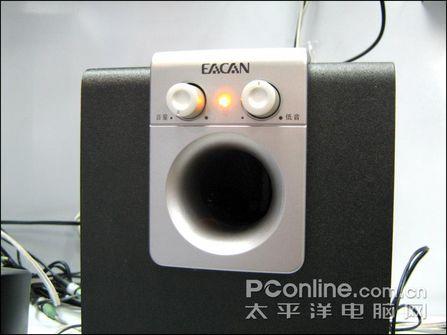盈佳 E-099G的主音箱采用了木质箱体结构,内置一只4英寸增强型低音单元,配合前置倒相管,低频量感相当不错,而且没有明显的发虚的感觉,看来增强型低音单元获得了不错的效果。盈佳 E-099G比较有自身特色的就是工作指示灯没有采用时下较流行的蓝色LED,而选用了一款橙黄色的LED,在银色的面板中格外突出。盈佳 E-099G仅为用户提供了一个主音量以及一个低音音量的调节旋钮,对于低价产品来说已经相当不错了。