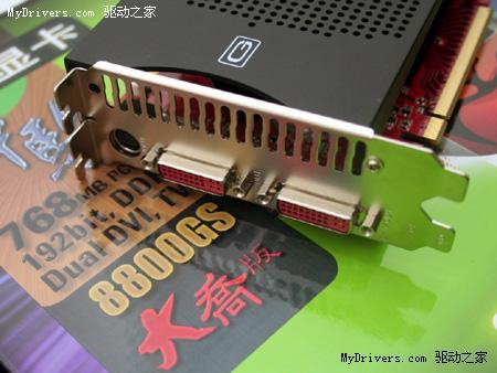 显卡采用了双DVI+TV-OUT的输出方式,支持Dual-Link双DVI输出,并附送DVI-D-SUB/DVI-HDMI转接头以及色差输出线。
