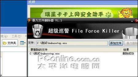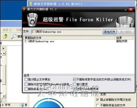 在木马病毒流行的今天,越来越多的木马、流氓软件将自身锁定,隐藏等,使广大网民无法删除木马文件,许多时候就是连杀毒软件也无法将它们彻底清除干净。不过现在倒出现了一些好用的文件删除工具,在目前的文件强制删除工具中,有两款工具比较强悍,它们是超级巡警的暴力文件删除器(下载)和360超级文件粉碎器,各自拥有了一批忠实的用户群体,下面我们就这两款工具实际测试一下,看看它们的实战效果。