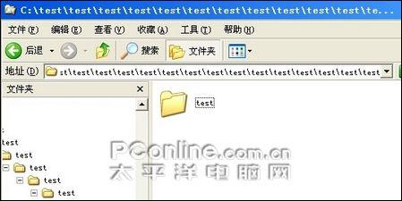 4.接下来我们再次进行一番特殊的测试:此方法是构造特殊的非常规的路径,方法来自360超级文件粉碎器的作者MJ0011的代码,即建立超长目录(如图8)。