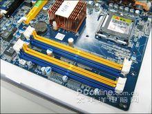 内存部分,主板板载4个DIMM内存插槽,支持双通道DDR2 667/800/1066MHz内存,内存容量最高可达8G。内存供电采用独立开关电路,使内存运行更加稳定。