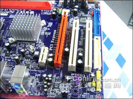 主板扩展部分提供PCI-X16显卡插槽,1条PCI-E X1和2条传统的PCI插槽。