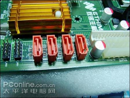 主板扩展部分具备一条PCI-E X16显插槽,2条PCI-E X1和3条传统PCI插槽。此外,主板还提供4个SATA2接口和1个IDE接口。