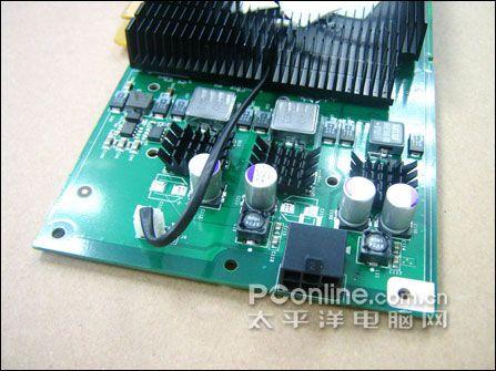 映众 9600GT游戏战斗显卡整体采用2+1相供电设计,并且提供了外接6pin电源接口,保证显卡在PCI-E X16平台上的兼容性。