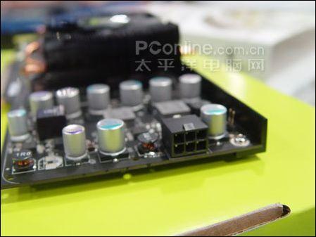 铭瑄 9600GT超金钻版供电部分采用3+1相供电设计,外接6pin辅助供电和大量日系优质固态电容,用料相当扎实,能为显卡提供充足的电流。