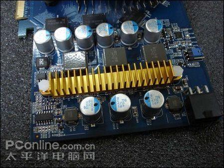 显卡采用了扎实的2+1供电,用料极为豪华,全面采用优质的日化PSC以及三洋SEPC固态电容,与全屏蔽防磁电感和低内阻高效场效应管搭配,保证显卡长期在高频率下稳定运行的纯净供电。