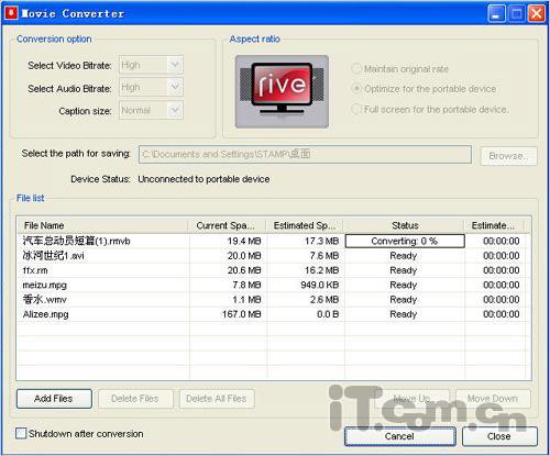 动态视频播放方面,E100支持MPEG 4 SP、WMV9、XVID SP编码的AVI/WMV格式视频文件。播放帧率最高可支持30帧/秒。可在机身上直接删除视频文件,也支持书签功能。播放时对视频文件的加载较快,充分发挥了闪存对硬盘的优势,不过播放效果并不完全令人满意,颗粒感较为明显,不过还是比较流畅的,没有出现明显的停顿现象。随机软件iriverplus3可以方便地转换格式以适合E100播放。