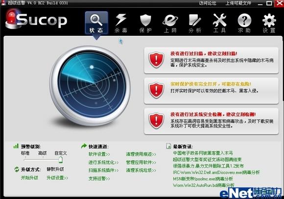 “超级巡警”和“360安全卫士”都提供了安全实时监控的类似防火墙的功能,并且这两款免费软件提供的还是多项安全监控: