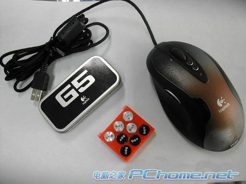 罗技对极致个性化的追求在G5的设计当中显现得淋漓尽致:G5激光鼠标拥有16个微型的圆形砝码——其中重1.7克和重4.5克的各8个。用户可以任意选择8个砝码的组合放置到一个小匣子里插入到鼠标的底部。玩家们可以进行多达几千种的砝码组合来获得不同的重量,同时当不同重量砝码置于不同的位置时用户可使鼠标一侧的重量超过另一侧。玩家可以根据自己实际需要进行调整——从而使鼠标的重量和重心对自己来说真正精确到完美。