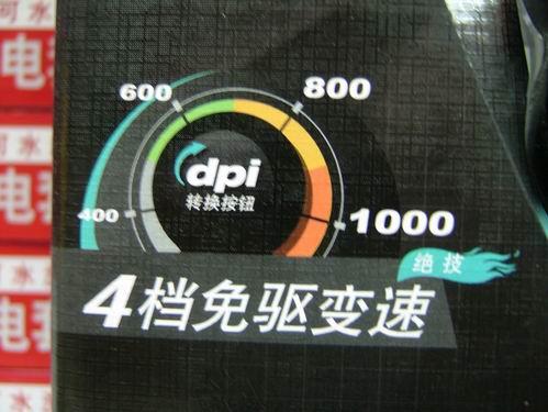 值得一提的是,鼠标采用了4档免驱调变 DPI 技术,在鼠标出厂原始状态下,不需要安装任何鼠标驱动,只需要轻松点击鼠标滚轮后面的按键—单键循环式改变分辨率DPI,便可以快捷变更鼠标分辨率,鼠标变速键颜色将随速而变,帮助视别不同的分辨率。