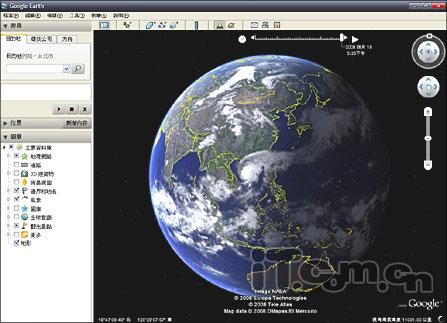 在老版本中,Google Earth其实就像是一个电子地图。无论白天、黑夜,我们都能看到目标所在地最清楚的状态。而在全新的4.3版中,呈现在大家面前的,却是一个真实的地球。因为,借助新版本中新增加的“日夜模式”功能,无论白天、黑夜,都可以在这个虚拟“地球”上一览无遗了,如图3所示。
