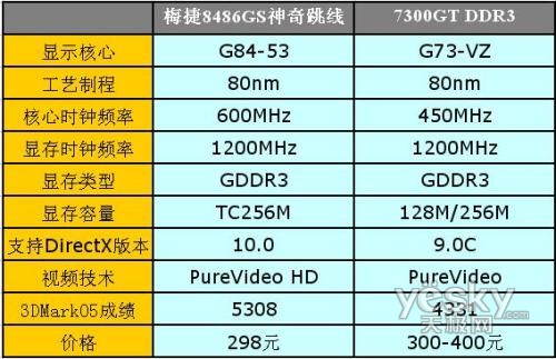 给你300元,能买什么样的显卡?7300GT?8400GS(G86核心)?现在298元就能买到梅捷寒龙SY8486GS神奇跳线-TC256M,这款卡采用了高规格G84核心+高速DDR3组合,性能远远高于7300GT和公版8400GS(G86核心),而价钱却更加便宜,你还会考虑过时的7300GT吗?
