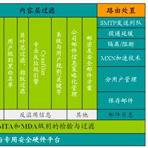一般的反垃圾邮件网关在对邮件系统进行判定检测后,需要把正常邮件转发出去,这里就要求反垃圾邮件系统有非常好的邮件加速技术或者路由技术;否则会造成大量邮件队列或者积压。