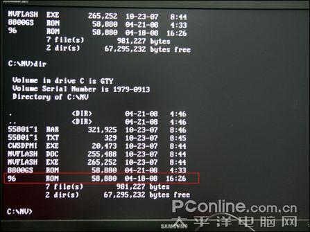 注意:BIOS刷新和BIOS芯片有关系。如果刷新不成功,请用下面的命令测试。