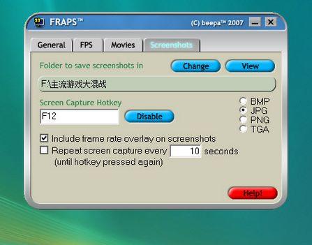 Fraps是当前非常流行的3D辅助测试软件,它具备了FPS帧数实时检测、纪录功能、将3D画面录制成电影的功能以及屏幕截取功能。在运行中,它只需要占用显示器很小的一部分位置,主要通过快捷键来进行操作。当然,快捷键还可以根据用户的喜好自行定义。