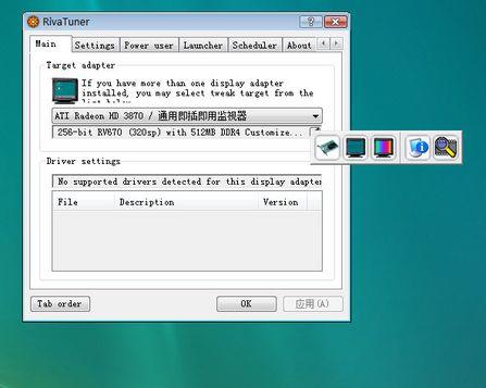 Riva Tuner是一款相当老牌的显卡修改工具。同样的,它通过修改注册表的相关选项,来完成对显卡的修改或超频工作。它最大的优势项目就是,拥有大量的显卡破解和专业图形卡的修改脚本。例如,当年9500~9700Pro的修改以及9800SE~9800Pro的八管线破解,都是Riva Tuner被广大超频爱好者所拥戴的原因之一。另外,River Tuner最得专业图形设计者欢心的是,它所装备的专业图形显卡修改脚本,可以帮助不少荷包并不充裕,但又想学习专业图形设计的朋友。River Tuner还可以在游戏中实时监测GPU运行频率以及温度监控,功能十分强大。