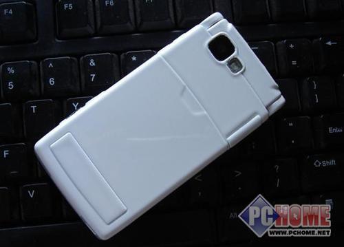 SO905i的背面一眼就能看出索爱手机的设计特点,整圆的镜头配上银色,在机身上略有凸起,旁边同样搭配了一个补光灯,320W像素的镜头,支持AF自动对焦功能。