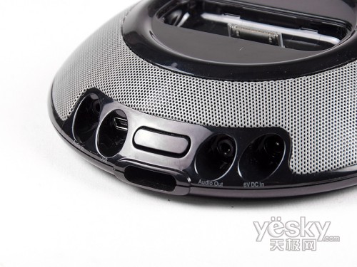 从图片上我们可以看到JBL多媒体音箱的做工都是非常精细的,On stage micro的表面涂层经特殊处理,使用起来历久常新,在On stage micro的中间,我们看到有一个iPod专用的音源插口,方便使用。