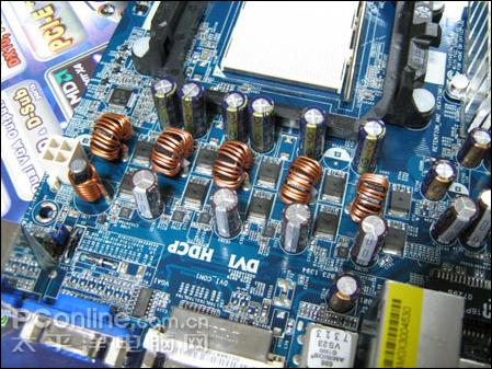 技嘉的产品为什么一直都有不少的fans呢,看其扎实的做工与用料就知道。技嘉 GA-MA78GM-S2H采用了3相供电设计,每相配备4个MOS供电管以及1个全封闭的R60电感线圈,并且技嘉 GA-MA78GM-S2H为HT总线设计了一相独立的供电电路,配置了2个MOS和1个R60全封闭电感线圈,而整个CPU供电电路更全部采用了固态电容滤波,保证了CPU能得到最优质的电流供应。