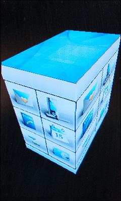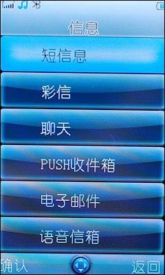 这次步步高i188手机的主菜单设计摒弃了之前平面单调的九宫格的设计,运用了3D动画效果的样式,和多普达的S1动态菜单很像。分为文件管理/信息两大项,每项里又包括了6个子选项。