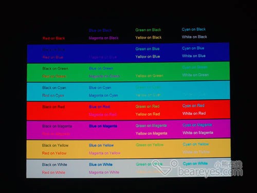 色彩镶嵌测试当中,优派 PJ260D依然表现出高品质,各个颜色搭配都能够看清。这要倚仗极致色彩技术,使得DLP投影在色彩表现方面有了大幅改进。