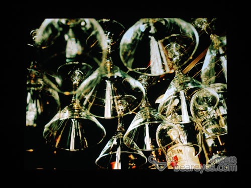 一组玻璃的图片,无论从细节过渡,还是光泽质感都表现得淋漓尽致。特别是黑暗环境下,暗部细节依然清晰,DLP在对比度和暗部表现方面远胜LCD投影。