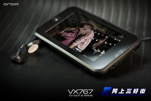 昂达 VX767还可以支持多种格式图片浏览、游戏、FM调频收音、双线程任务,电子文本和最高达32GB Micro SD(TF)卡(SDHC,高容量存储卡)扩充功能,有望取代DVD播放机。除此之外,VX767还可连续播放音乐40多个小时(黑屏情况下)或者10个小时视频,免除了对续航时间的担忧。