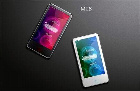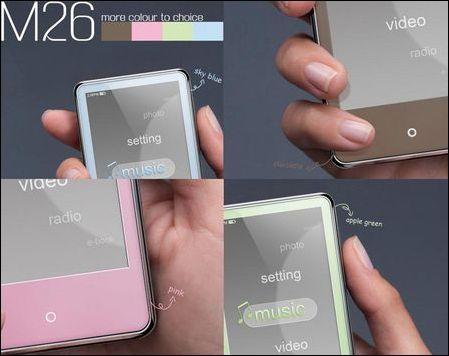 台电M26采用IPHONE采用的电容型全屏触摸屏幕,触摸屏幕与机身面板完美的融合在一起。可以很方便的通过手指触摸屏幕完成所有操作。2.6寸WQVGA宽屏(400*240)分辨率,可以直拖直放RMVB/RM/FLV/AVI视频,支持TV-OUT输出功能,直接可以在电视上看到精彩的视频,能够播放双无损以及具备微软PLAYFX音效。