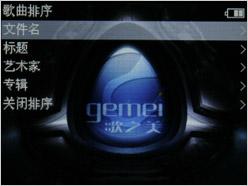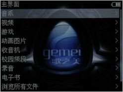 歌美X100采用目前流行的华芯飞方案,功能丰富实用,包括音乐、视频、游戏、动画图片、FM收音、录音、电子书等主流功能,此外歌美X100还特别地将校园广播独立出来设计在主菜单上,这样就不必到FM设置菜单内将收音地区设置为日本了,大大方便了学生收听校园广播。歌美X100的菜单采用动态切换模式,操作简单便利。
