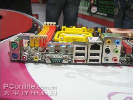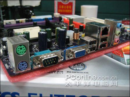 精英 GeForce 7050M-M主板提供VGA模拟视频输出接口,1个串行接口,集成了百兆网卡和六声道声卡。