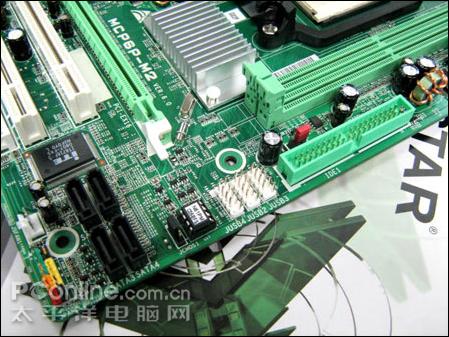 映泰 MCP6P-M2主板提供VGA模拟视频输出接口,串行接口,内建RTL8201CL百兆网卡和ALC662六声道。