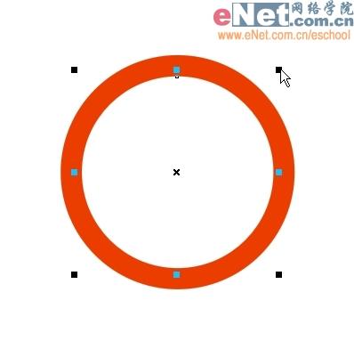 3、按住Shift键的同时,将椭圆右上角的调节块向内拖动,放开鼠标时点一下右键即可复制出一个小椭圆,给它填充白色,然后将两个椭圆一起选中,Ctrl+G群组,形成一个圆圈。