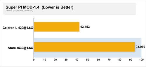评测成绩有些出乎人的意料,就这样一款处理器在性能上并没有明显落后于采用酷睿2架构的赛扬420。无论是在CPU理论性能上还是CPU多媒体性能上,Atom虽然都处于下风,但是性能并没有落后太多。