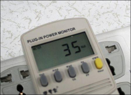 在接下来的功耗评测中,终于将ATom处理器的优势发挥的淋漓尽致,在系统空载的情况下功耗仅为35W,而仅是在运行3D Mark06时候的功耗也仅仅增加了5W,实际功耗为40W,这个功耗完全已经和笔记本相媲美。从功耗方面来讲对于喜欢长期挂机的朋友来说是个不错的选择。