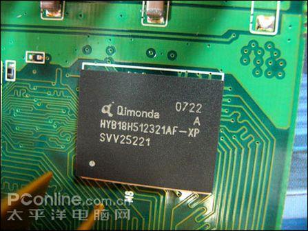 显卡搭载了奇梦达的DDR3 1.0ns显存颗粒,显存规格384MB 192bit,核心/显存频率550/1400MHz。