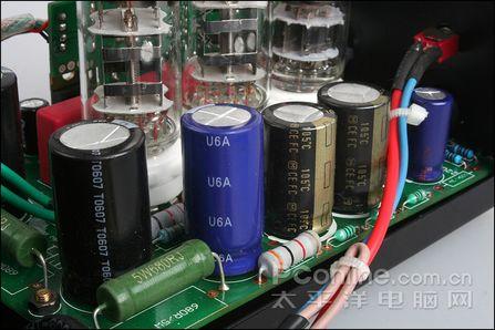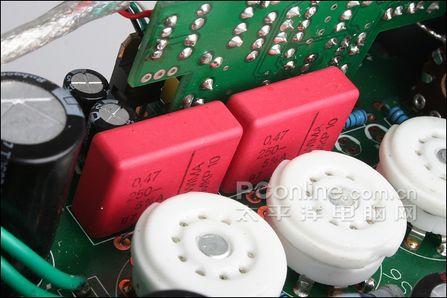 高压滤波电路部分采用的电容分别采用了红宝石、松下等品牌的产品。可能一些朋友对这样的配置略有微词,但实际上装满补品的东东是否意味着声音好呢?其实未必。好东西还需要好的搭配才能出好声,作为消费者,我们只需在选购时注意实际听感就好了。