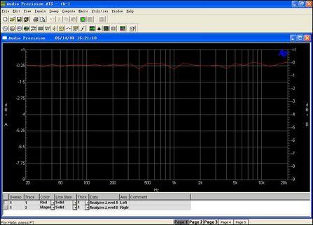 测试前,我们收到了TH-1的测试曲线,曲线为频谱分析仪所得,可靠性自然比声卡输入RAMM测试更为标准,我们用来作为试音参考。