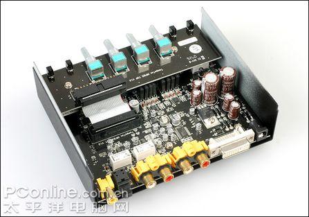 这款声卡输出部分只有一个6.35mm立体声输出接口,并没有脱离耳放的框框。据工程师介绍,这款耳放也可作多媒体音箱的音源和前级,实际应用上并不会太大的问题。笔者认为,目前一些中端甚至高端2.0也都常用免前级设计,因此耳放最为前级也并无不可。当然,用来搭配耳机还是最好的。